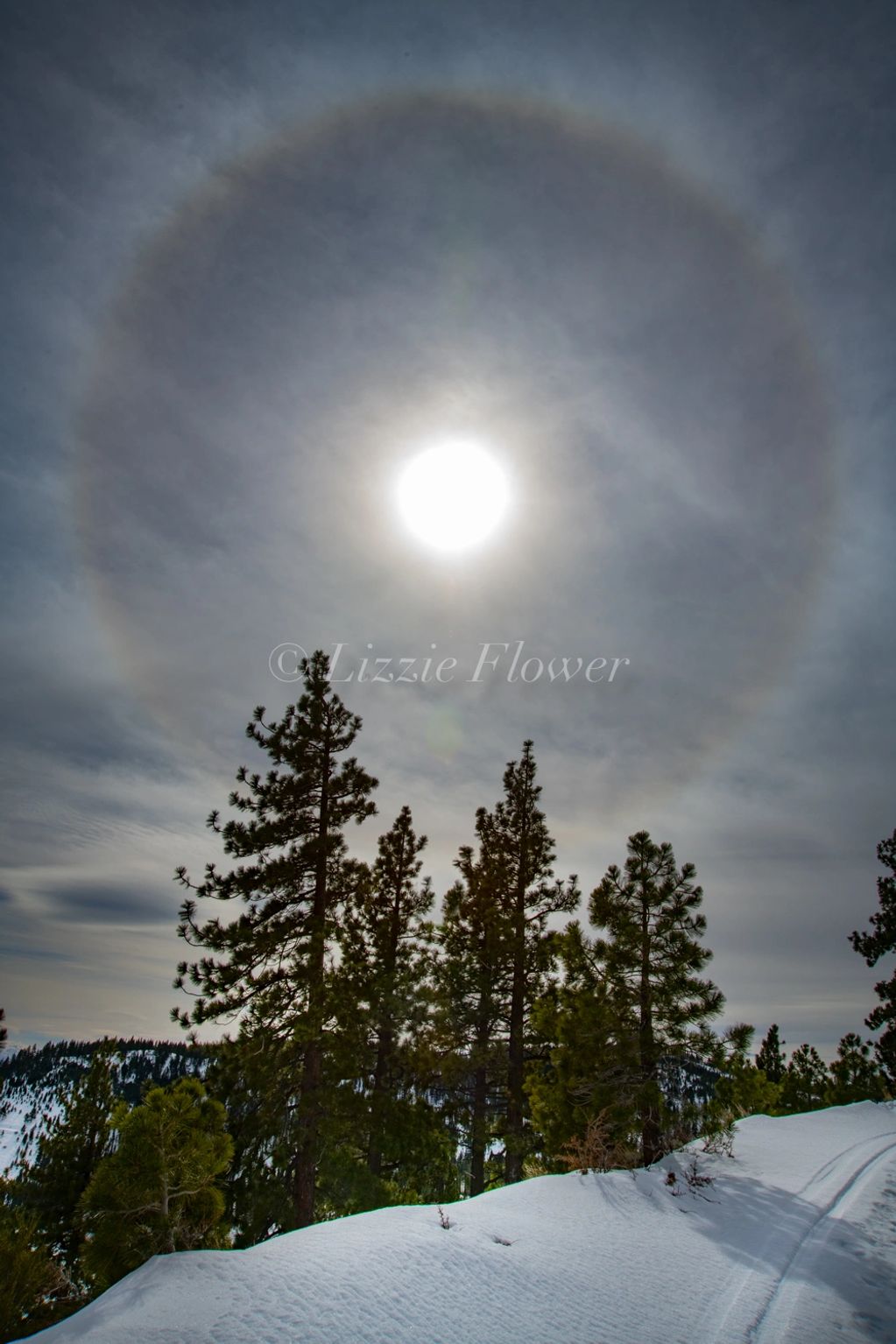 This sun halo was captured during a snow shoe hike on Old Mount Rose Highway in the North Lake Tahoe area