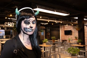 In a coffee shop on the afternoon of Halloween, I had a young lady walk by and I told her she'd done a great job on her makeup. Upon seeing my camera, she asked me if I'd like to take her picture. Again, there I was taking a strangers picture and again, it was a pretty cool shot.